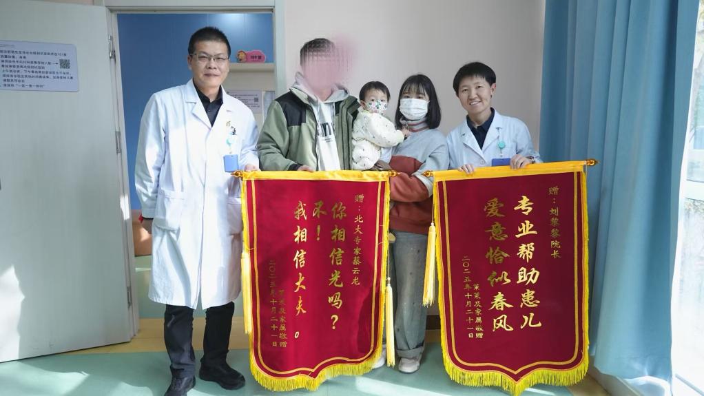 小茉莉一家人也特意制作了锦旗,专程来感谢北京大学第一医院和北京大学第一医院宁夏妇女儿童医院的各位医护人员。“专家的精湛医术和医院贴心的服务让我们感到特别温暖,没有想到北京的专家这么快就能来到宁夏给小茉莉手术,看到小茉莉现在健康快乐成长,我们感到很幸福。”小茉莉妈妈说。