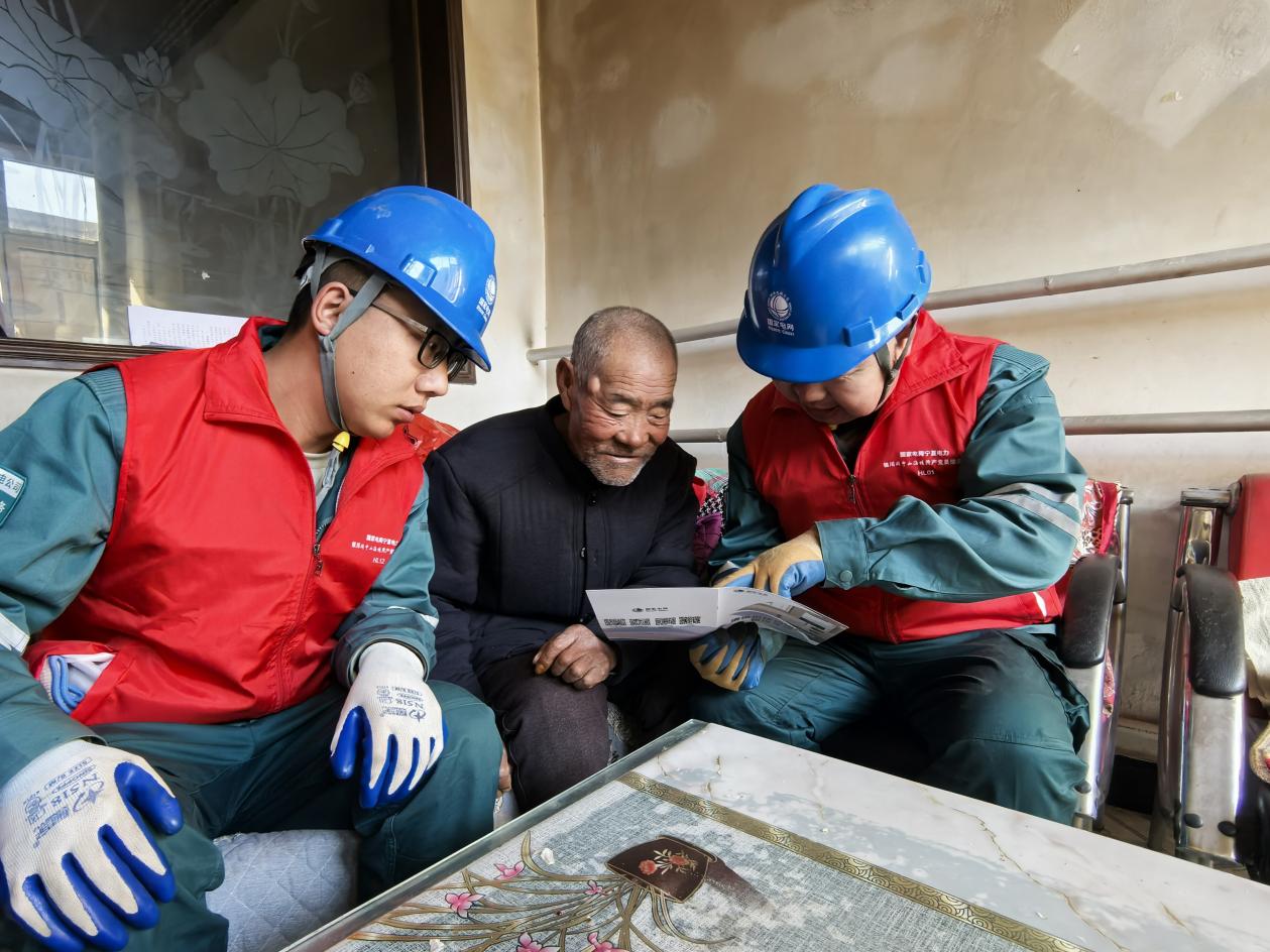 “大爷,这个服务卡您收好,有啥用电的事儿,您随时打这个电话。”临走时,队员们将一张便民服务卡贴在了何大爷家最显眼的位置。