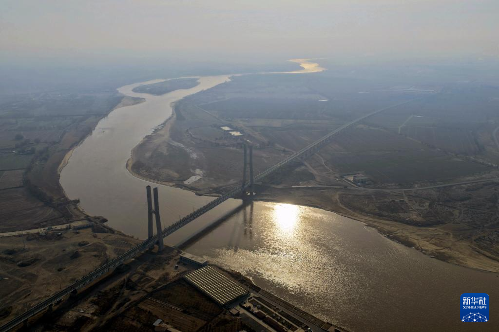 12月22日拍摄的包银高铁乌海黄河特大桥(无人机照片)。
