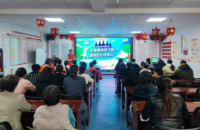 1月29日下午,兴庆区解放西街社区戒毒康复工作中心联合辖区健康社区抓住大学生寒假返乡契机,举办“青春无毒 匠心筑防”禁毒主题宣讲比赛。来自宁夏幼儿师范高等专科学校大三的学生们,用“数据+案例”揭开新精神活性物质及麻精药品滥用的严重危害。