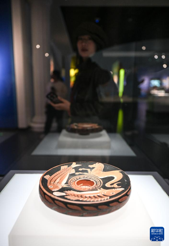 3月27日,“陶上神话——古希腊彩陶及普利亚艺术文化特展”在宁夏博物馆启幕。展览以古希腊彩陶为核心载体,汇聚陶器、雕塑、钱币等120余件珍贵文物。新华社记者 冯开华 摄