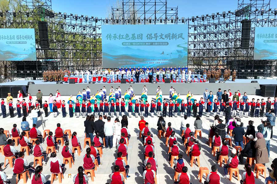 “追思致远 礼赞时代”主题展演系列,以“追思·礼赞·传承”三个篇章依次展开,舞蹈《永远的丰碑》《清明雨润黄河情》、诗朗诵《可爱的中国》等节目轮番上演,将红色基因与传统文化融合,青少年跨越时空与英雄的真挚对话,句句滚烫。当少先队员们共同唱响《我们是共产主义接班人》时,嘹亮的歌声响彻广场,那是少年们对先辈最庄严的承诺,也是红色薪火代代相传的生动写照。