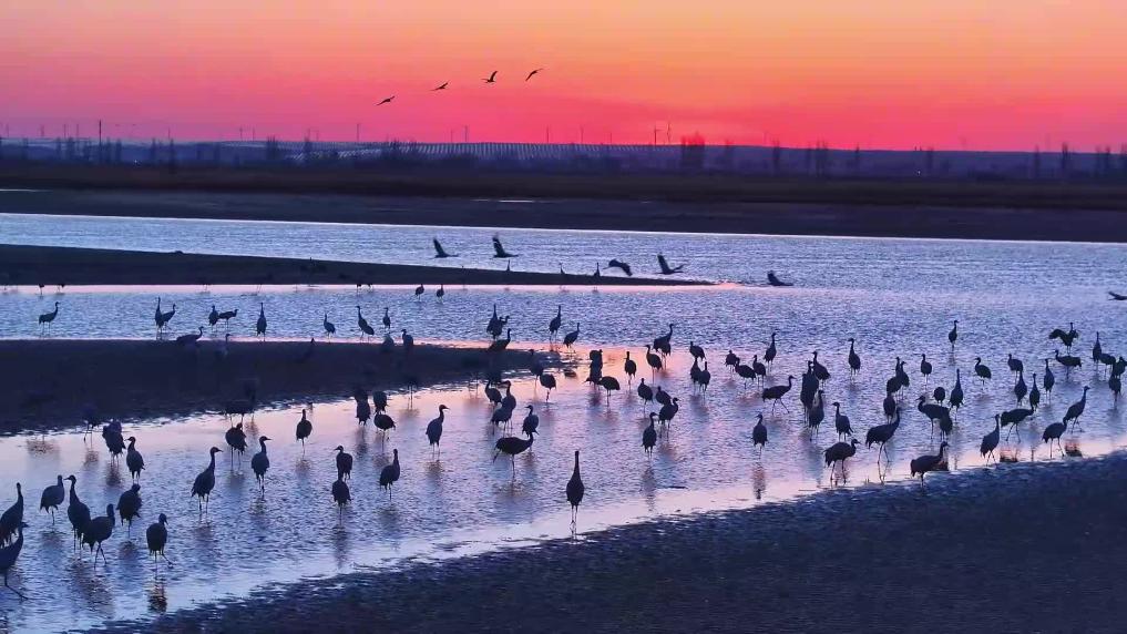 宁夏平罗:黄河水暖 灰鹤起舞