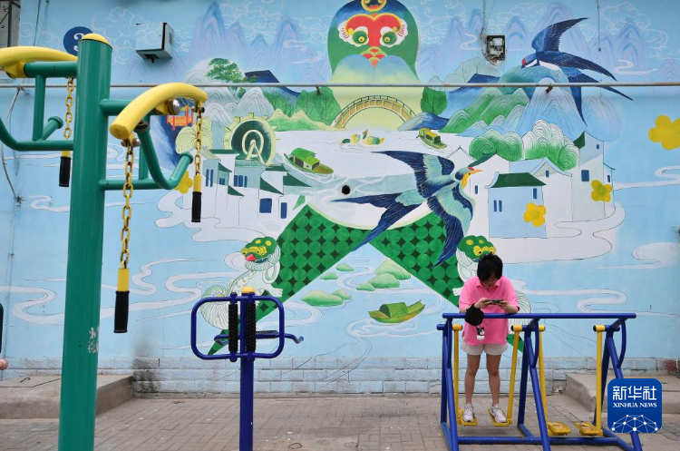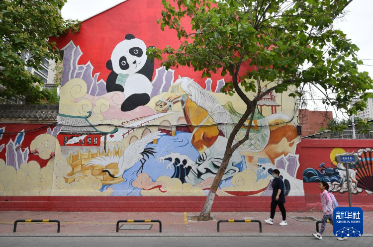 6月4日,市民经过银川市兴庆区教育巷特色墙绘。