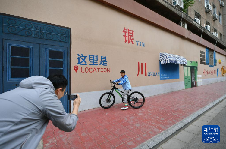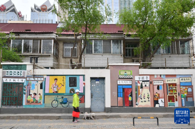 6月4日,市民经过银川市兴庆区自强巷特色墙绘。