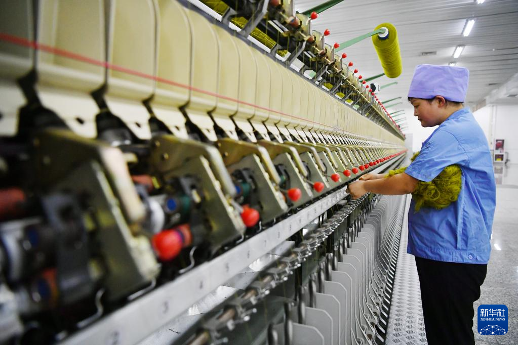 宁夏灵武羊绒产业园区经过多年培育发展,形成了集原料收储、分梳、绒条、纺纱、织衫、面料于一体的产业链。2022年宁夏灵武羊绒产业园区完成产值16.67亿元,同比增长38.02%。新华社记者 王鹏 摄pagebreak