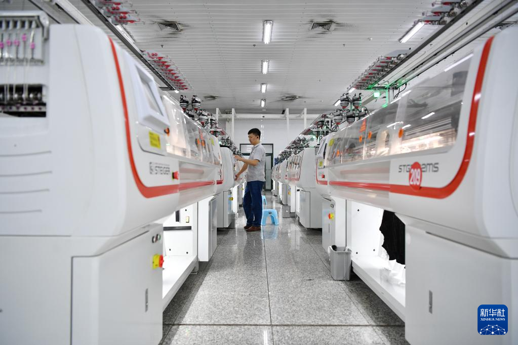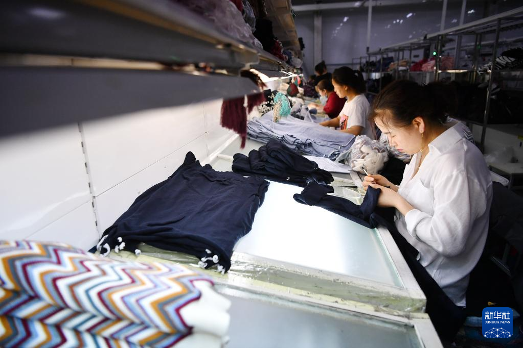 6月10日,工作人员在宁夏灵武羊绒产业园区一家羊绒加工企业制作羊绒成衣。