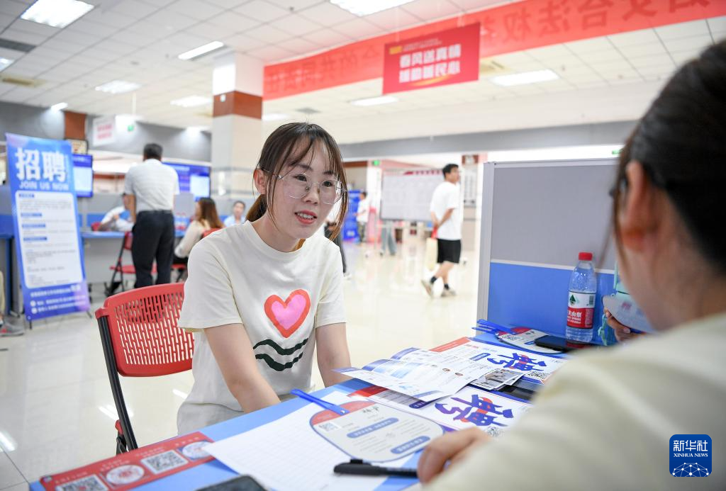 当日,2023年宁夏青年人才暨离校未就业高校毕业生大型招聘会在宁夏(银川)人力资源服务产业园举行。本次招聘会吸引50余家用人单位参加,提供来自光伏、机械、环保、电力等行业的1000余个岗位。新华社记者 冯开华 摄pagebreak