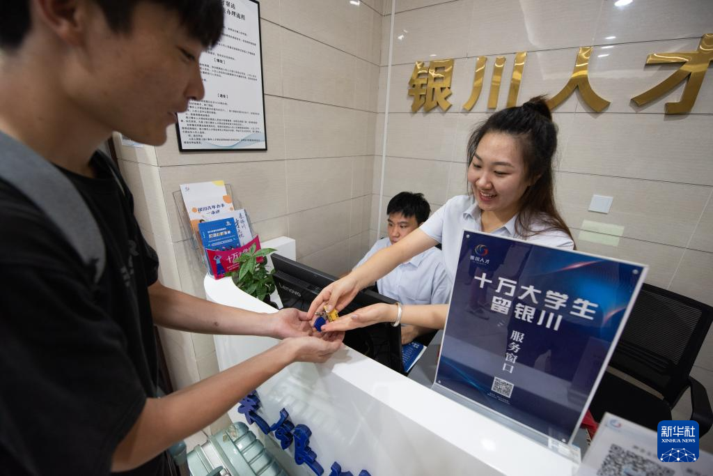 当日,宁夏银川市委人才工作局联合银川市团委建设的盛世丰茂青年人才驿站正式启用,并迎来首批入住的大学生。这是银川市首个可“拎包入住”、具备“一站式服务”功能的青年人才驿站,共有100个床位,提供就业指导、政策宣传、岗位信息、人才交流、城市融入等服务,大学生首月可免费入住。新华社记者 李旭伦 摄