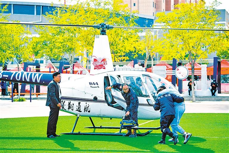 救援人员利用直升飞机第一时间转移受伤人员。