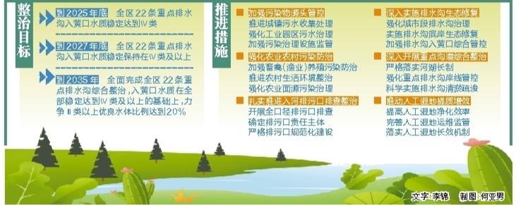 方案明确,2023年底前,完成全区22条重点排水沟补充排查,摸清各类排污口的分布及数量、污水排放特征及去向、排污单位基本情况等信息,强化基础排查和源头管控。各地级市政府按照“依法取缔一批、清理合并一批、规范整治一批”要求,严格落实排污口设置审批有关规定,建立排污口整治销号制度,开展排污口规范化建设。