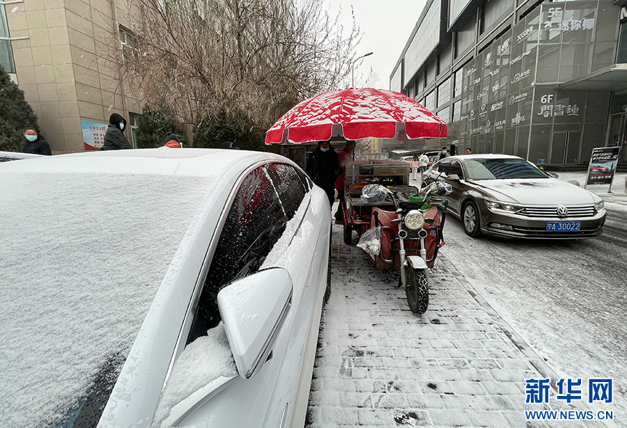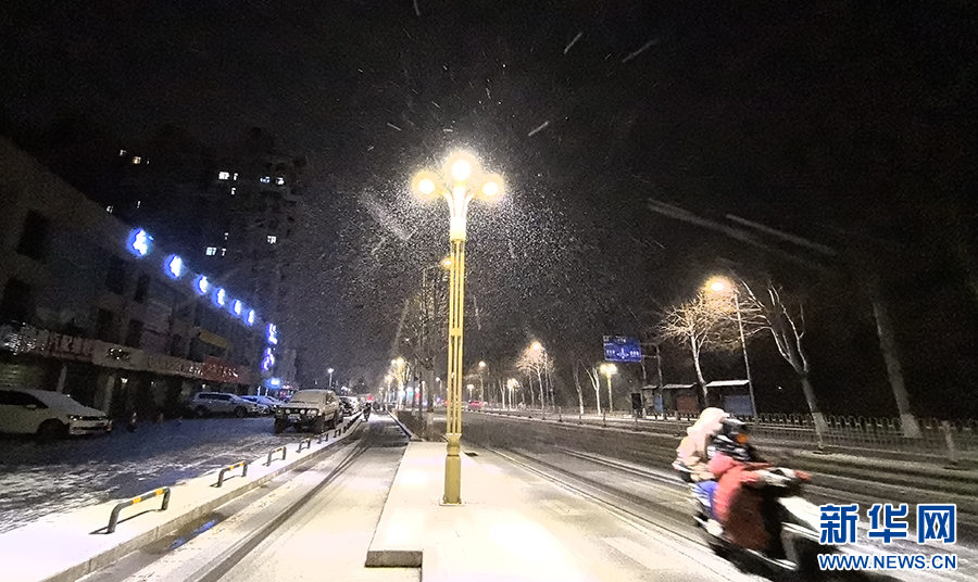 银川街头雪花飘。 12月14日,宁夏银川迎来今冬首场降雪。新华网发(祁瀛涛 摄)pagebreak