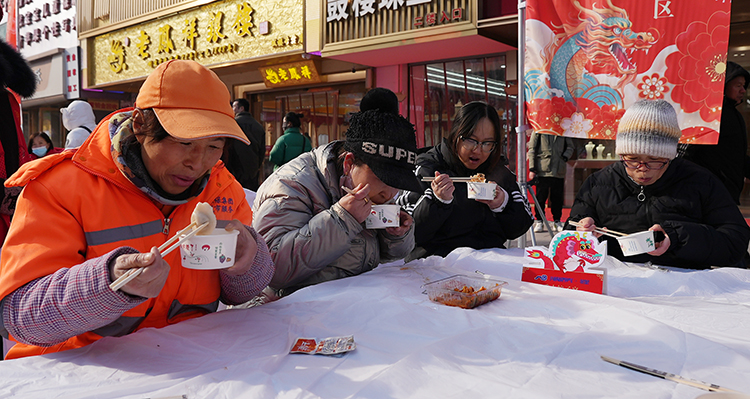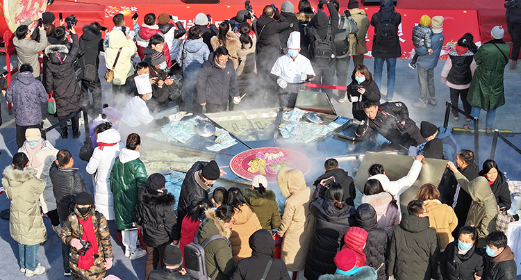 “开锅啦!”随着震耳的锣鼓声落下,“千人饺子宴”活动现场人头攒动,走过路过和等待已久的市民大快朵颐地分享着这份喜悦。