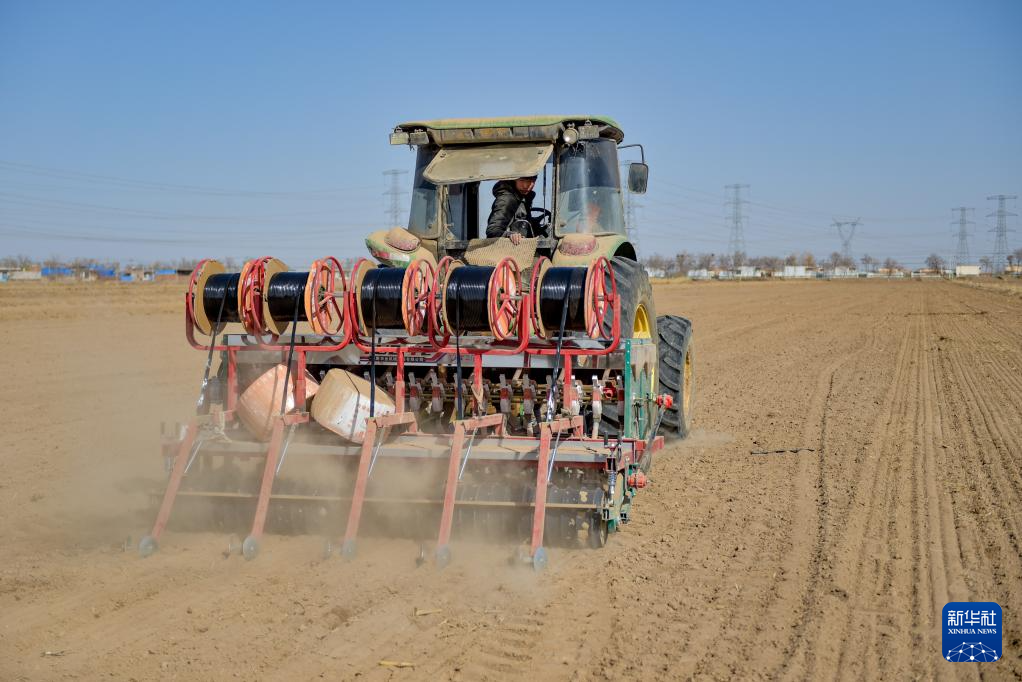 3月7日,在宁夏石嘴山市平罗县通伏乡新潮村,农户使用农机进行春耕。