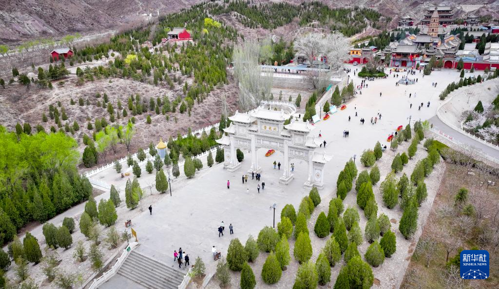 4月5日,游客在宁夏石嘴山市北武当生态旅游区踏青、游玩(无人机照片)。
