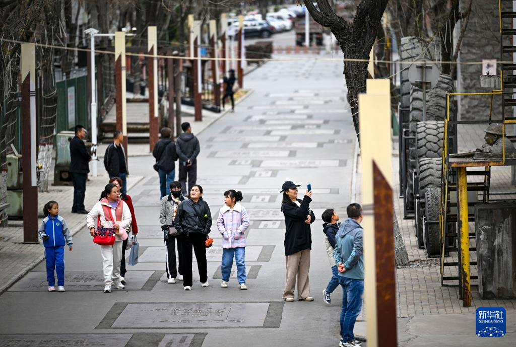 4月5日,游客在宁夏石嘴山市大武口洗煤厂工业遗址公园游览。