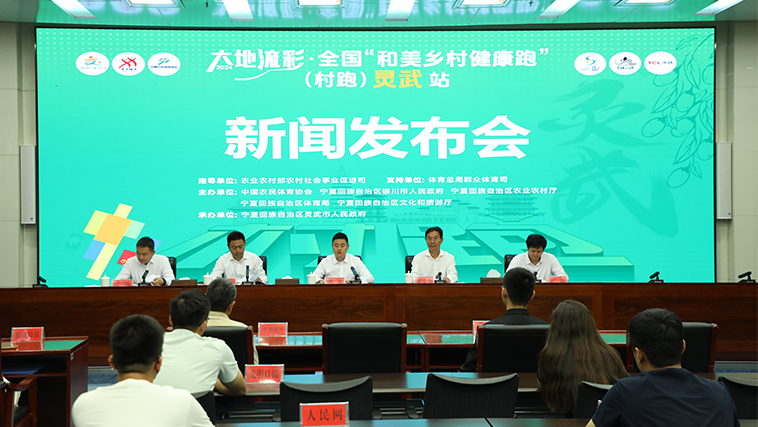 大地流彩·全国“和美乡村健康跑”(村跑)灵武站新闻发布会现场。