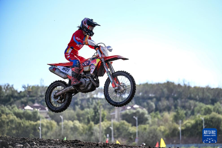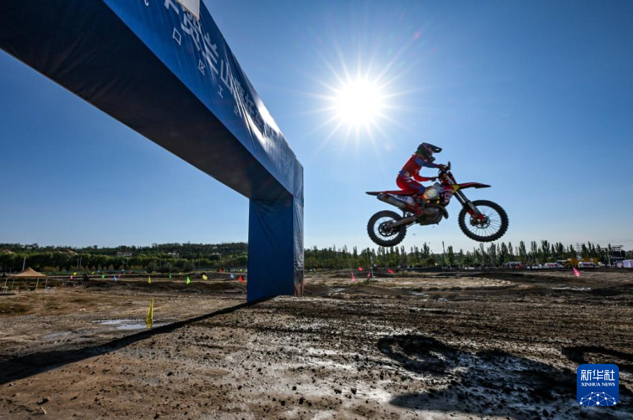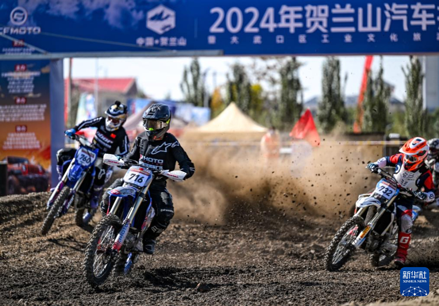 当日,2024年贺兰山摩托车越野场地赛在宁夏石嘴山市贺兰山汽摩运动梦想公园举行。来自进口组、国产组、新秀进口组、新秀国产组、女子组5个组别的50名选手展开角逐。新华社记者 冯开华 摄