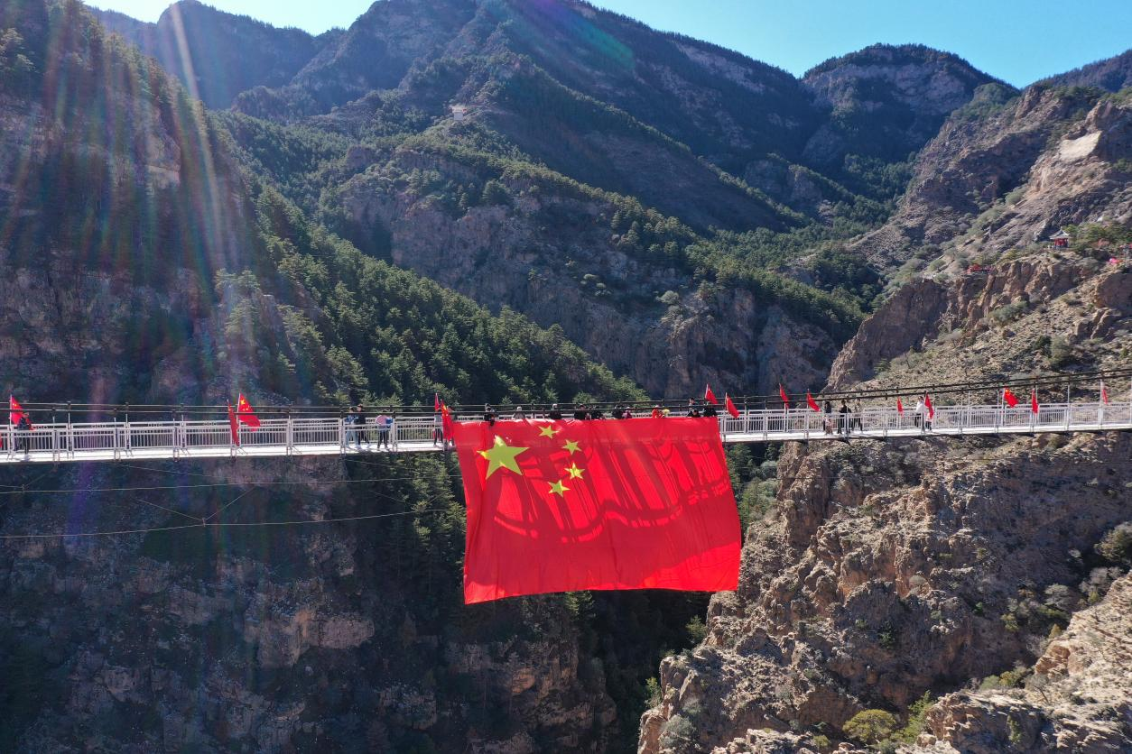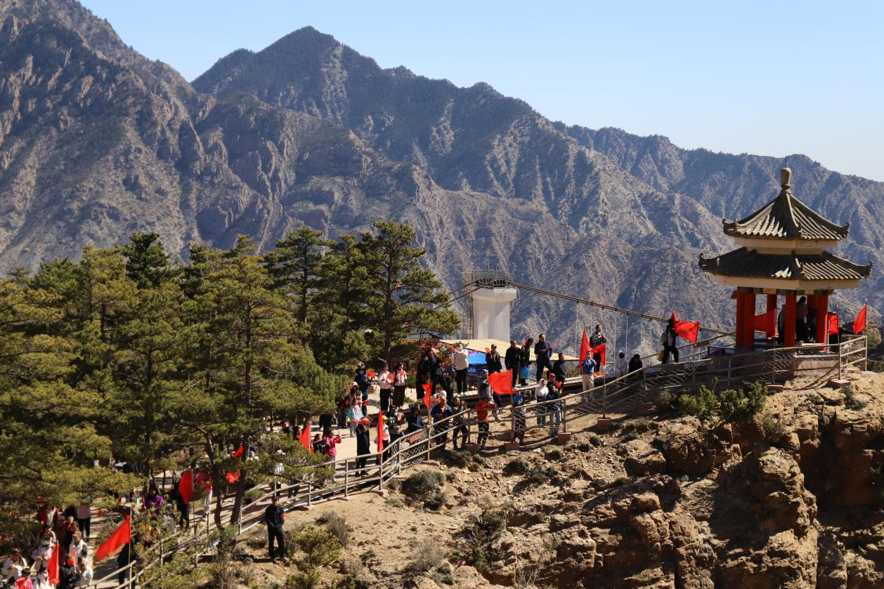 假期期间,景区营造了浓厚的节日氛围,开展以“共赏蘭山锦绣,同庆盛世华诞”为主题的节庆活动,贺兰山上红旗招展,红歌快闪活动激情四溢,成为全场亮点,游客参与热度高,共同庆祝祖国华诞。此外,贺兰山红歌会、红歌大舞台、高空峡谷走钢丝等一系列精彩活动,以及“秋游贺兰山”短视频话题挑战赛、“绿意贺兰山”垃圾银行环保实践活动,吸引了大量游客前来参与。让游客们在游览美景的同时,也能够感受到浓厚的爱国氛围。