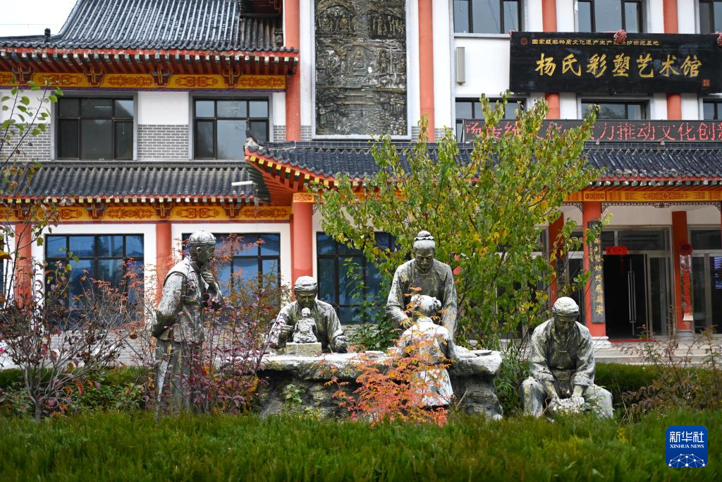 这是10月31日在隆德县杨氏彩塑艺术馆前拍摄的彩塑作品。