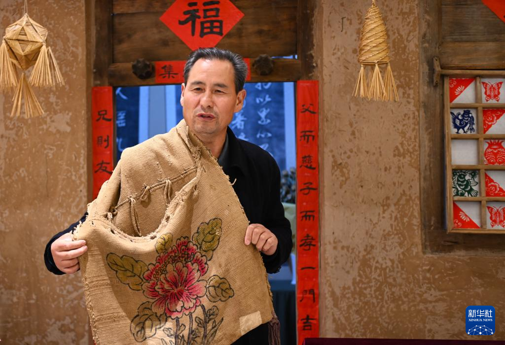 10月31日,在隆德县杨氏彩塑艺术馆,杨佳年展示父辈非遗传承人的外出工具袋。