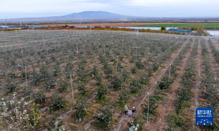 这是11月3日拍摄的位于宁夏吴忠市红寺堡区红寺堡镇弘德村的一处苹果种植基地(无人机照片)。