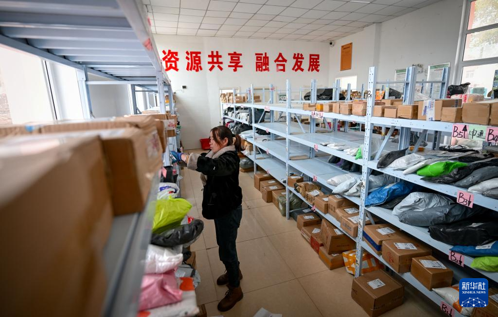 11月10日,隆德县联财镇客货邮商旅综合便民服务站工作人员在整理快递。