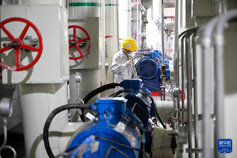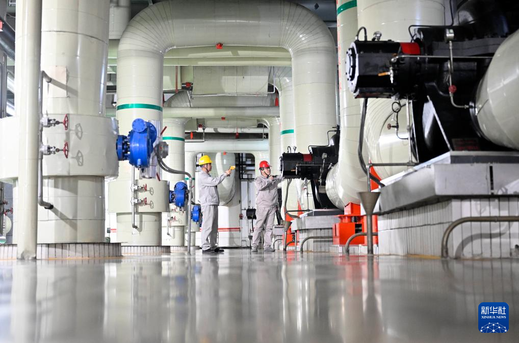 据了解,国家能源集团宁夏灵武电厂作为银川市主要热源,供热面积超过7700万平方米。今冬供暖季,该厂通过供热智慧化升级改造、设备维护检修、物资储备、24小时巡查等措施,全力护航居民供暖。新华社记者 王鹏 摄pagebreak