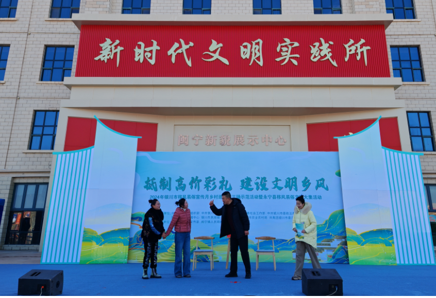 12月14日,“抵制高价彩礼 建设文明乡风”2024年银川市移风易俗宣传月乡村巡演第三场示范活动暨永宁县移风易俗文明大集活动在闽宁镇开展。