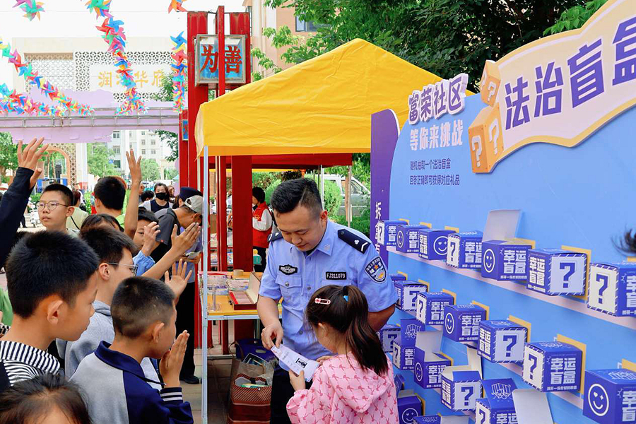 在法治宣传服务区域,社区通过法治“盲盒”形式,将法律知识与游戏巧妙结合,寓教于乐,引人注目。在现场排队参与游戏的水岸花城小区的刘佳感慨道:“这是我第一次体验‘盲盒’这种普法形式,非常新颖又,又很接地气,这样互动式、沉浸式的普法更容易将法律知识送进人心。”