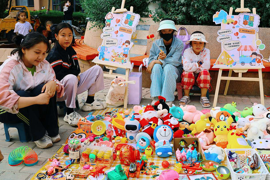 在跳蚤市场区域,小摊主们在家长的陪伴下,早早赶赴社区邻居节集市布置摊位。孩子们拿出“心爱之物”参加义卖——可爱的装饰物、漂亮的绘画作品、养护的绿植……各类特色宣传海报、卖力的吆喝声以及琳琅满目的货品吸引了众多居民驻足,而有趣的故事从这里开始,爱也从这里延续。