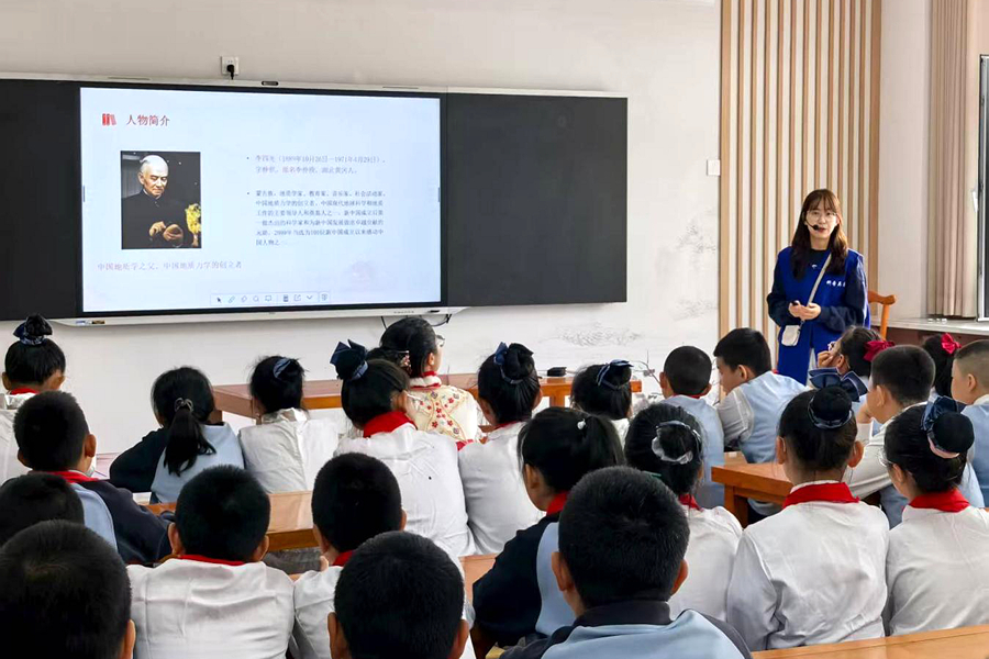 “同学们,这位慈祥的爷爷就是我国著名的中国地质力学的创立者李四光。”在弘扬科学家精神讲座环节,讲解员通过讲述科学家们的传奇故事和伟大成就,生动诠释了科学家精神的内涵,激发了同学们对科学探索的无限热情和对科学家们的崇高敬意。末尾还设置了“科学小知识”板块,让孩子们明白科学并非遥不可及,而是与日常生活息息相关。