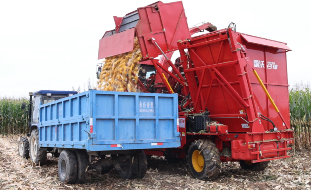 在望洪镇金星村、胜利乡先锋村及五渠村等地,只见大型玉米收割机在田垄间来回作业,机械轰鸣中,饱满的玉米棒被快速收割后,源源不断地送入至运输车辆。田埂边,农户们或协助疏导车辆,或整理收割后的秸秆,脸上满是丰收的笑意。