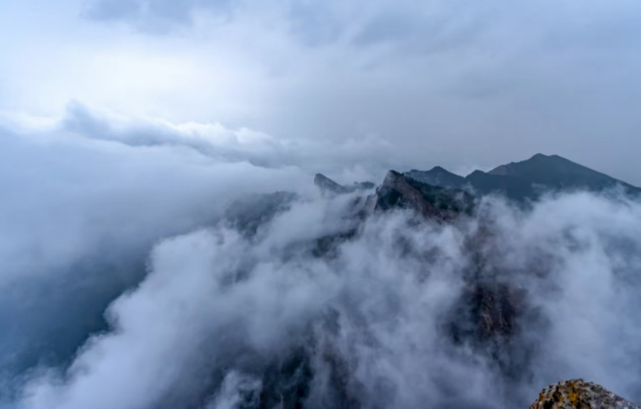 “云雾缭绕于山峦之间,汇聚成波澜壮阔的云海,与平日晴空下的雄浑景象相比,更添一份水墨画般的诗意与神秘。”一位来自陕西的游客说。