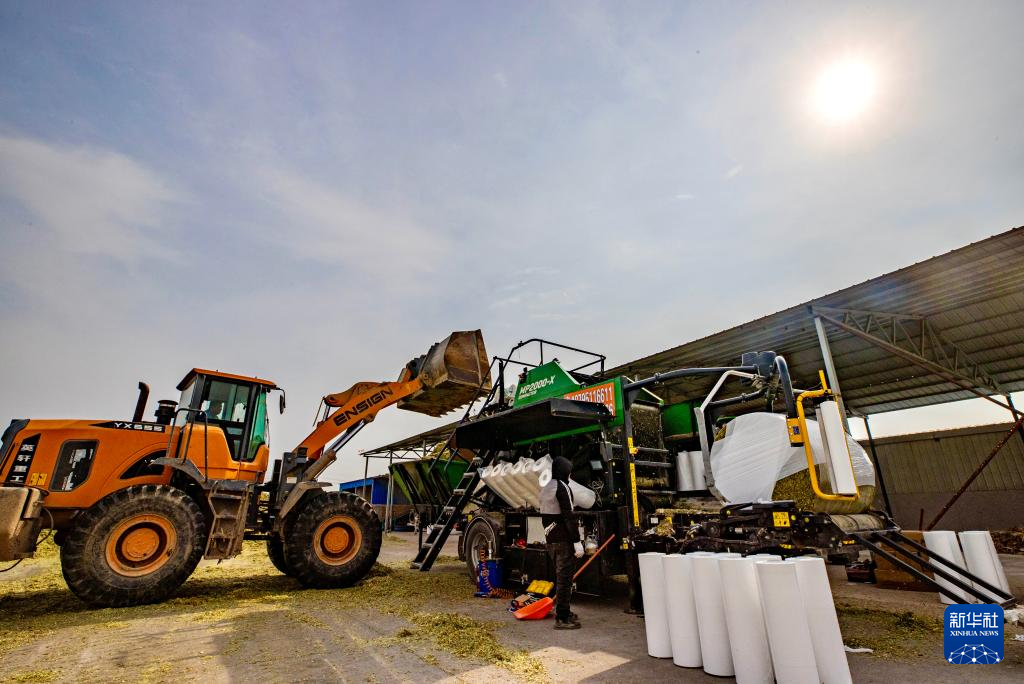 眼下,宁夏银川市永宁县闽宁镇种植的巨菌草进入收割期,当地农户出动机械收获巨菌草,田间一片繁忙景象。据了解,巨菌草收割后将作为青贮饲料,助力当地养殖业的发展。新华社记者 杨植森 摄