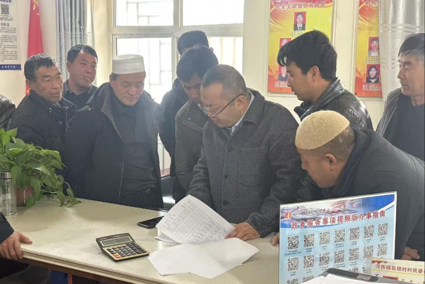 同心县农商行工作人员到村部为养殖群众现场办理贷款。(受访者供图)