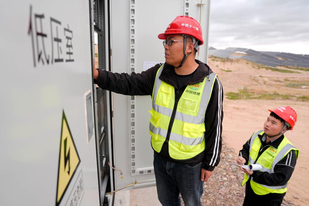10月29日,由中铁十一局集团承建的宁夏电投中卫迎水桥350MW风光同场一期项目在宁夏中卫市沙坡头区实现光伏区全容量并网。
