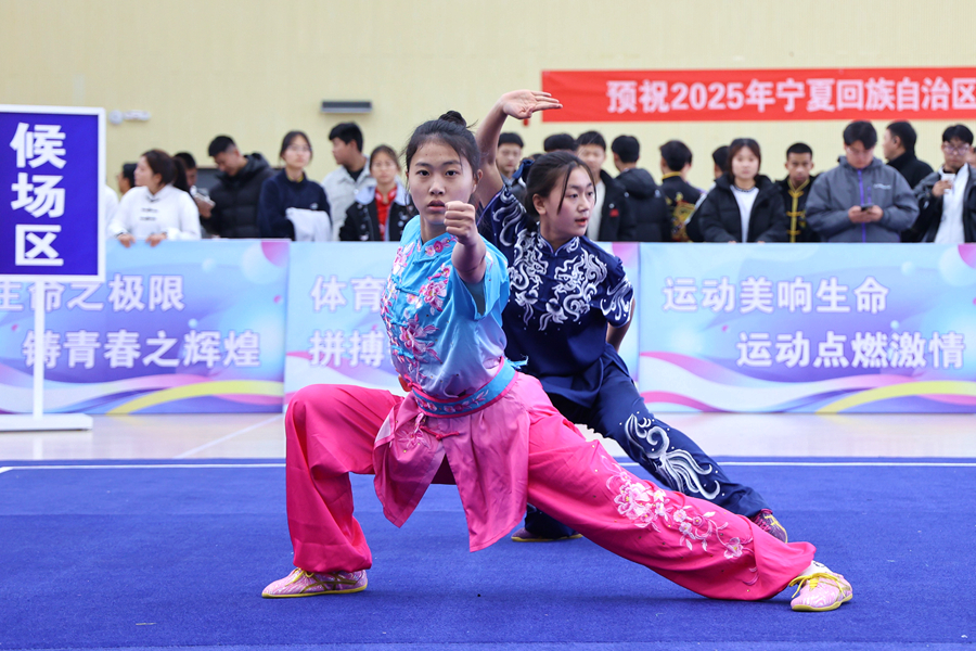 在为期3天的比赛中,来自宁夏全区五个地市的358名校园武术英才同台竞技,相互切磋。太极拳、翻子拳、查拳等中华拳术依次登场,一招一式皆是青春活力;刀、剑、枪、棍等传统器械精彩亮相,你来我往尽显武术精魂。