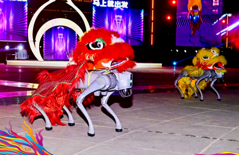 活动中,《机械狮舞》将精密齿轮结构与灵动舞狮技艺相结合,以刚柔并济的形态,直观诠释了“古”与“新”的融合主题。随后,“宁夏花儿”的悠扬唱腔与现代国潮编曲相映成趣,让传统民歌焕发出青春色彩;《东方腔调·国潮大秀》则将中卫非遗剪纸艺术与现代服饰设计相结合,机器人方阵演绎的中国功夫,刚健有力,科技感十足,成为全场瞩目的亮点。