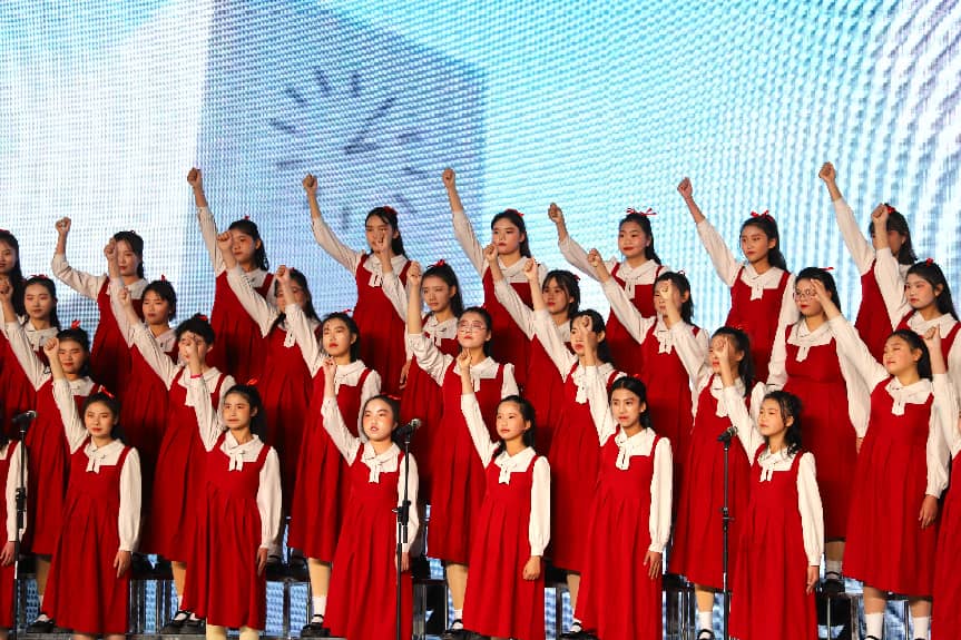 孩子们身着绚丽的演出服,脸上洋溢着自信的笑容,以饱满的热情、嘹亮的歌声,演绎了《红星歌》《唱支山歌给党听》《山河》《梨花又开放》等经典曲目。时而悠扬婉转,如清泉流淌,诉说着对祖国热土的深深眷恋;时而铿锵有力,似号角吹响,传递着新时代少年的壮志豪情。和声错落有致,声部层次分明,稚嫩的童声交织成动人的旋律,回荡在赛场的每一个角落。