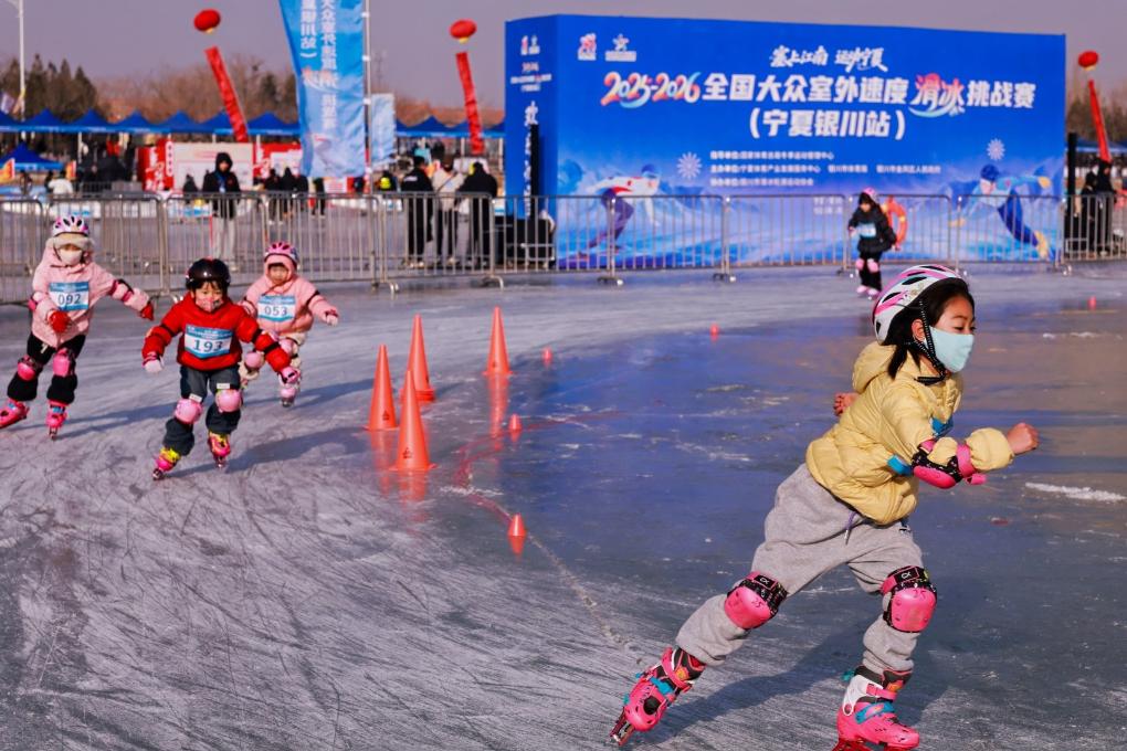 1月24日,银川市阅海湿地公园的冰面在一声清脆的发令枪声中唤醒——2025-2026全国大众室外速度滑冰挑战赛(宁夏银川站)开赛。