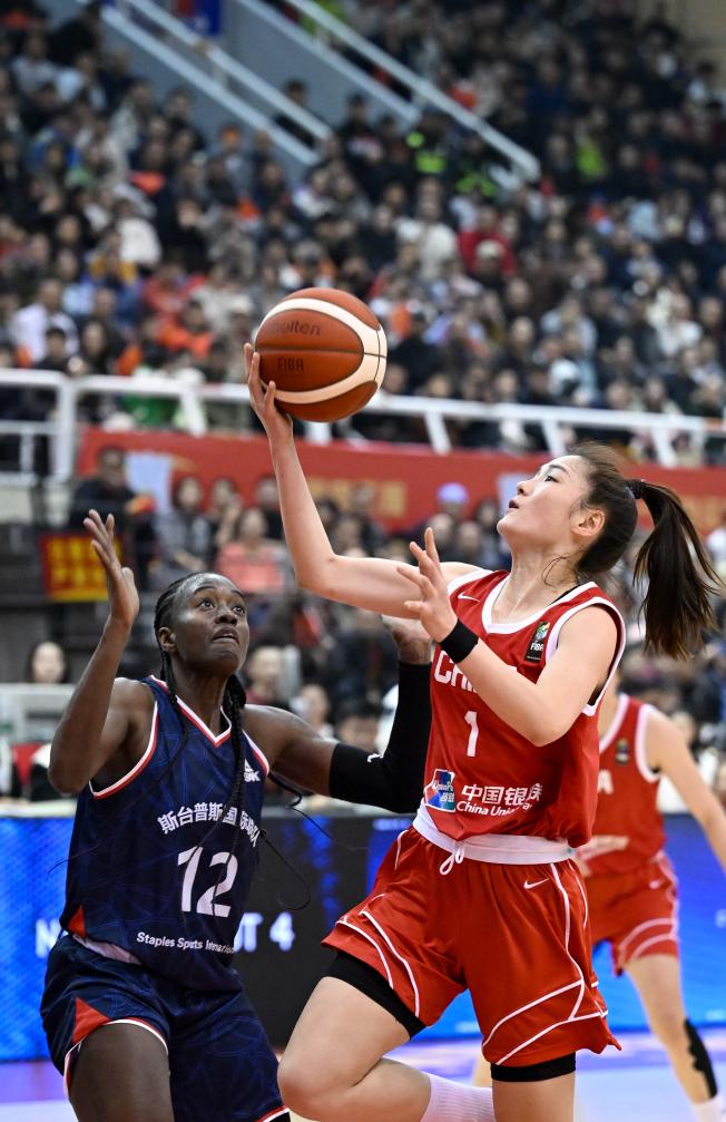 2月11日,在宁夏银川举行的2026年中国女篮热身赛中,中国队119比74战胜国际女篮联队。新华社记者 冯开华 摄
