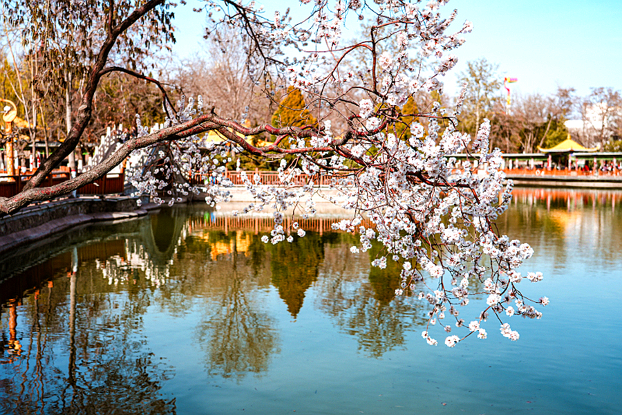 近日,宁夏石嘴山市大武口区青山公园里的桃花次第悄然绽放,粉艳的花朵缀满枝头,春意嫣然;更有那临水照影的灿烂,风过处,缤纷落英轻舞,把春日的温柔,尽皆揉进湖水粼粼的波光里。花开有时,春意不迟!一起来大武口区吧,让我们共赴一场与春天的浪漫邂逅。(王宵 陈炯)