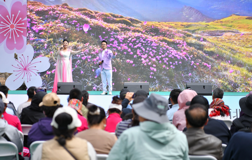 花海赏花听花儿。活动现场,非物质文化遗产花儿传承人撒丽娜一曲《我唱花儿给你听》唤醒黄土高原的集体记忆。来自宁夏、内蒙古、陕西、青海、甘肃等地的30多位优秀民歌(花儿)歌手与传承人齐聚黄河岸边,以花为约、以歌为媒,为现场观众献上了一首首跨越地域、融通心灵的民歌,共同奏响中华民族共同体意识的文化乐章。