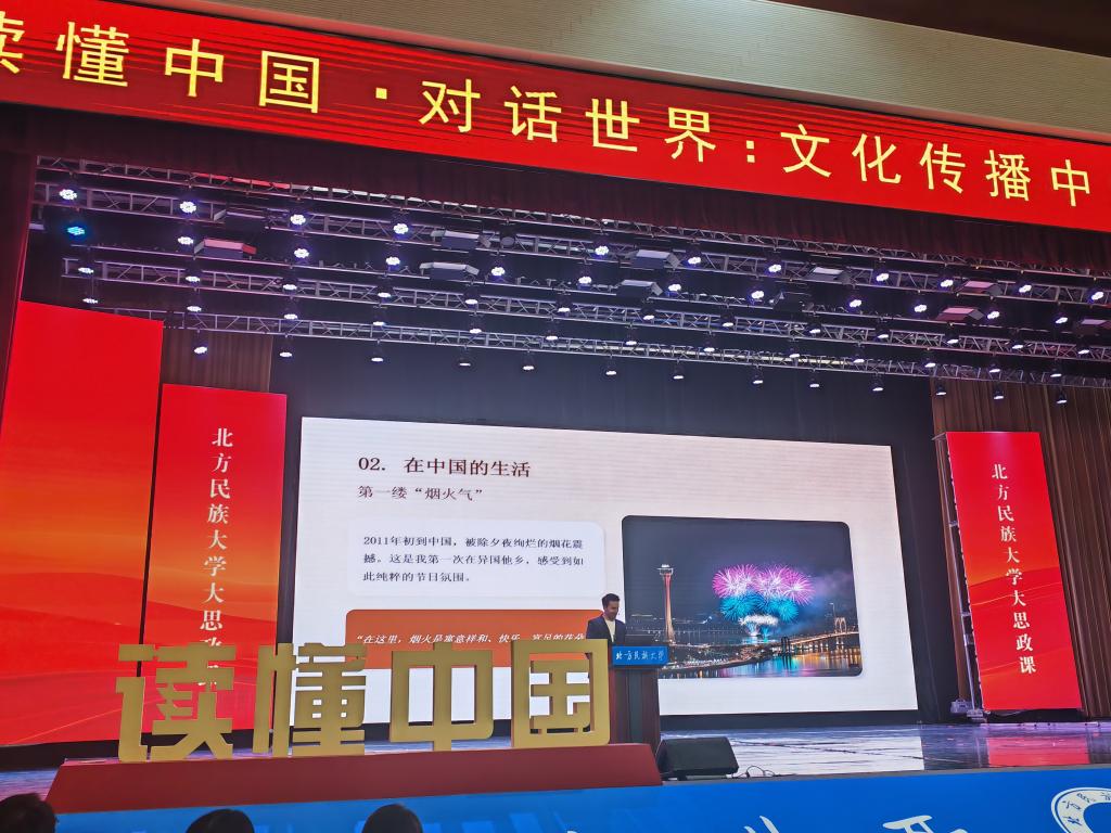 14日,北方民族大学举办“读懂中国·对话世界:文化传播中的青年力量”主题大思政课,以期教育引导青年学子做中华文化的传承者、中国故事的讲述者。中阿卫视驻华记者方浩明,西南民族大学外国语言文学学院副院长邓忠,北方民族大学“石榴籽”大学生宣讲团6名宣讲员代表和外国语学院教授张玫联袂主讲。