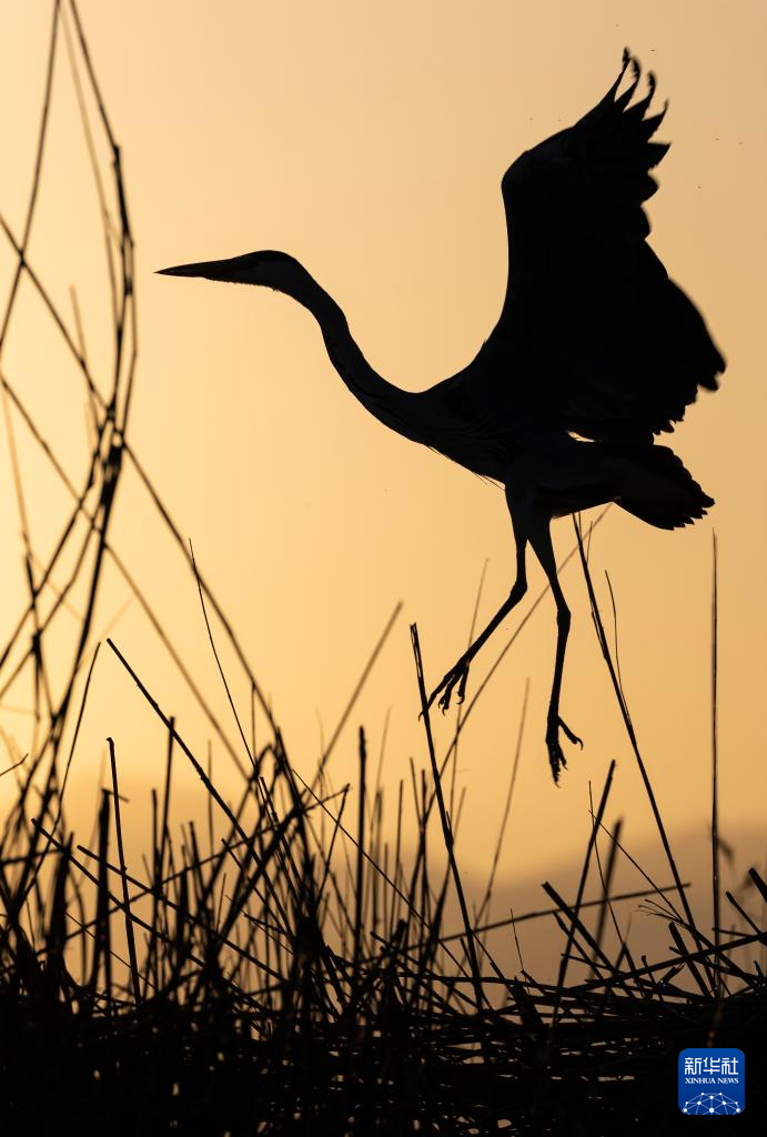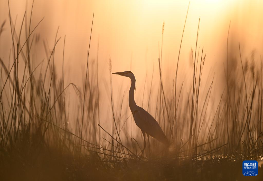 4月18日,苍鹭在沙湖芦苇丛中栖息。新华社记者 王鹏 摄