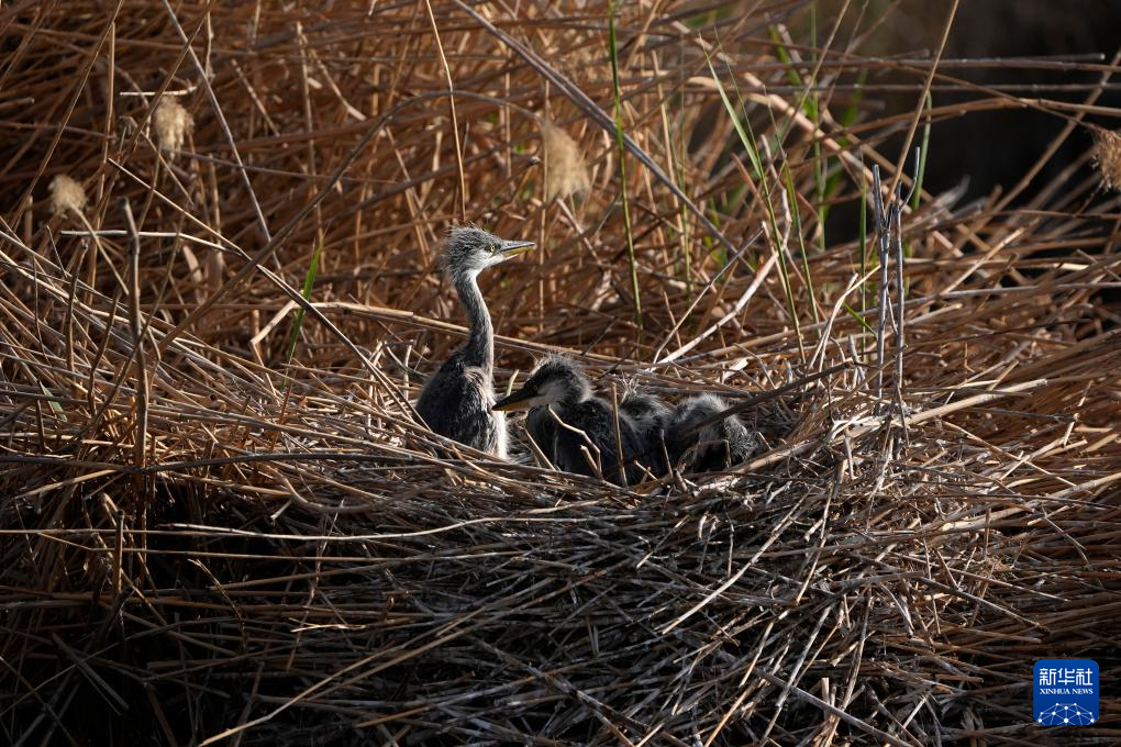 这是4月18日在沙湖拍摄的苍鹭雏鸟。新华社记者 冯开华 摄
