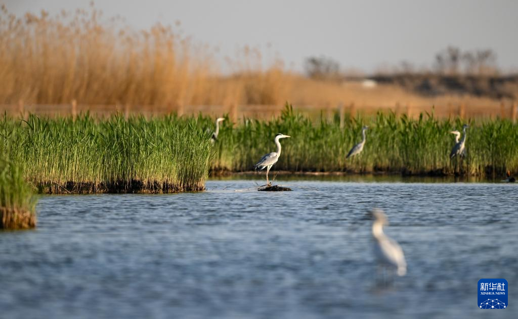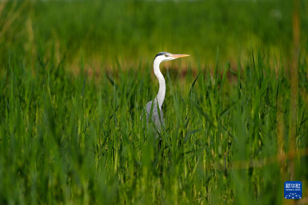 4月17日,苍鹭在沙湖中栖息。新华社记者 冯开华 摄