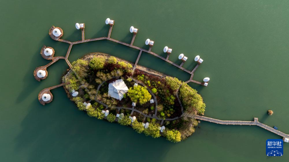 这是4月18日拍摄的沙湖湖心岛(无人机照片)。新华社记者 王鹏 摄