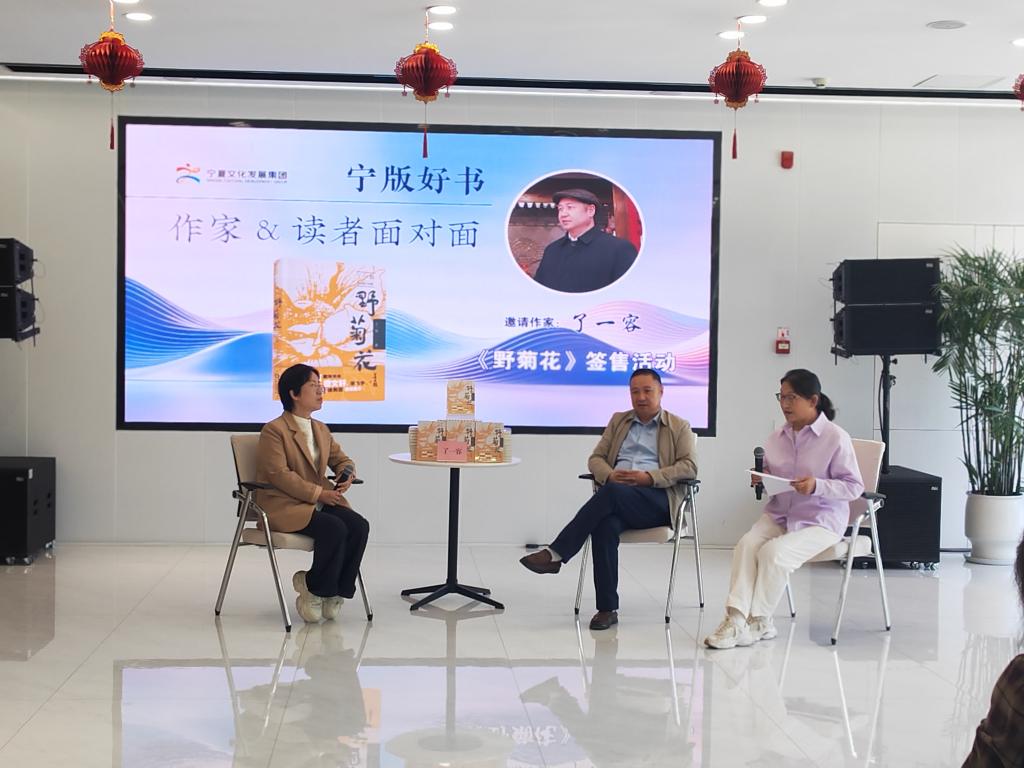 新华网银川4月25日电(记者艾福梅)作为宁夏人民出版社“宁版好书·作家面对面”系列签售活动之一,24日,宁夏本土作家了一容携再版的中短篇小说集《野菊花》与读者见面,并分享了自己的创作感悟。